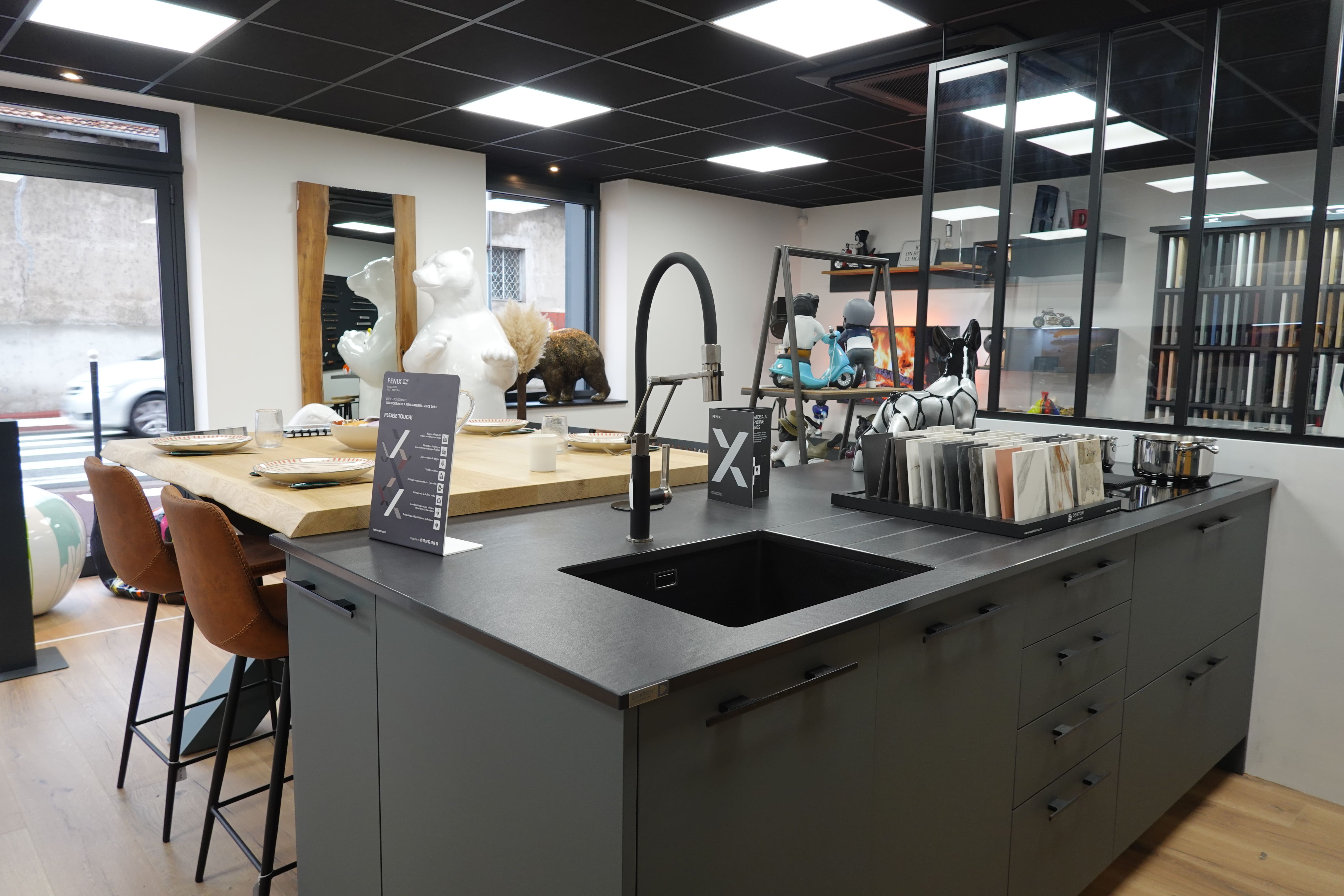 Art’Création met un point d’honneur à travailler avec des partenaires français de qualité, comme Charles Réma pour les cuisines ou Portea pour les rangements. Chaque projet est conçu dans le showroom du Coteau, puis fabriqué dans leur atelier situé à Saint-Just-la-Pendue, garantissant une fabrication locale, soignée et durable.